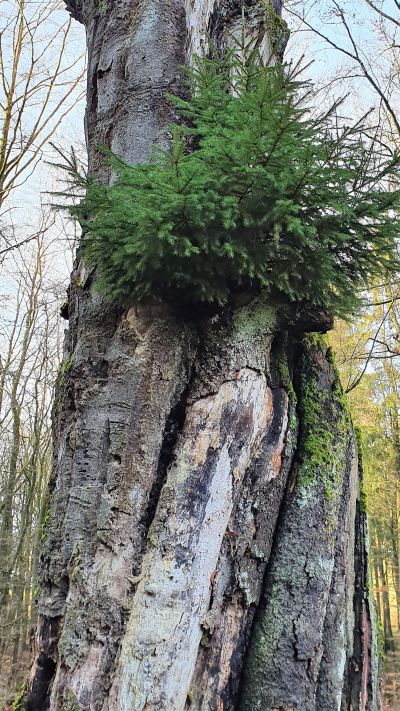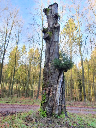 Rotbuche - Fagus sylvatica. Östlich von Kolverath in einer Wegegabelung eingangs des "Hurenbüsch". Stammumfang: 4,0 m, Höhe 19,0 m, Kronendurchmesser: 22,0 m, Geschätztes Alter: 200 Jahre [1]