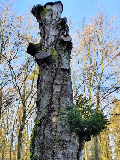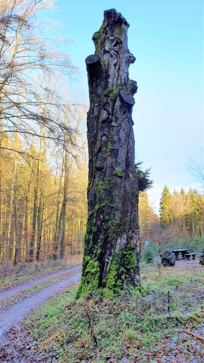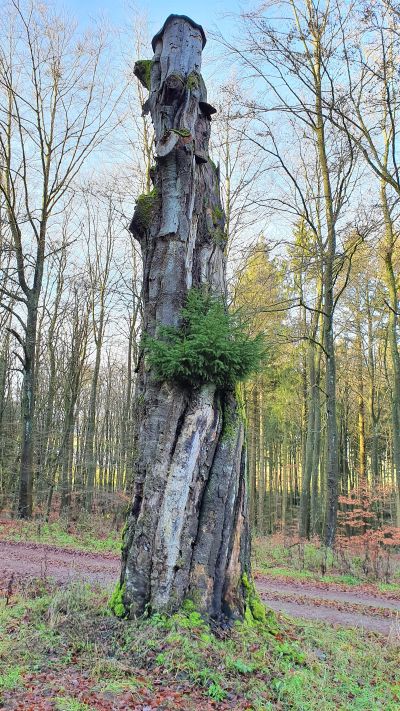 Die "Dicke Buche", in der Bevölkerung auch als "Dicker Baum" bekannt, ist mehr als 200 Jahre alt. Vor einigen Jahren musste der Baum aus Verkehrssicherheitgründen gekappt werden. Wind und Wetter hatten an dem Baum-Methusalem genagt und über die Jahrhunderte hinweg stark in Mitleidenschaft gezogen. Der verbliebene Stumpf bietet immer noch einen imposanten Anblick. Innen ist der hohl. [2]