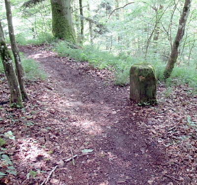 Einer von mehreren historischen Grenzsteinen an der Gemarkungsgrenze der Gemeinde Morscheid zu Sommerau, an denen der Premiumwanderweg "Morscheider Grenzpfad" verläuft. [1]