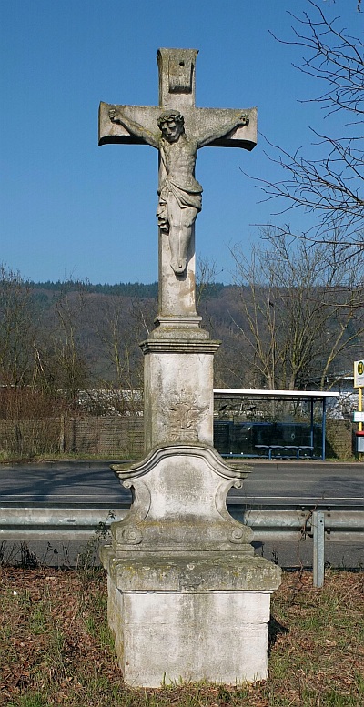 Altarkreuz; jüngere Teile des 1742 errichteten Altarkreuzes: auf dem Altartisch geschwungener Aufbau, ehemals bezeichnet 1821, relieferter Schaft mit Renovierungsvermerk von 1832 (Kreuz von 1950)