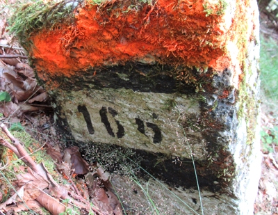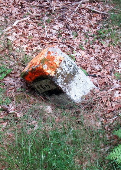 Forstbezirks-Grenzstein (106) im Osburger Wald (Staatsforst Hochwald) gelegen. [1]