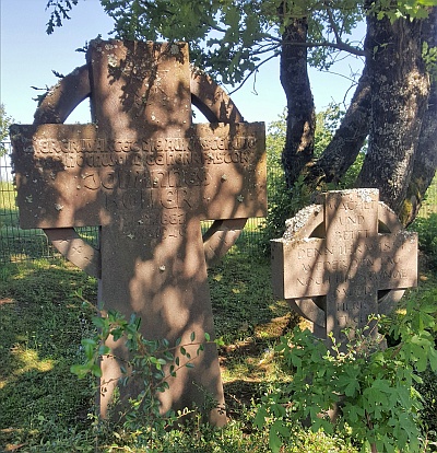 Das Gedenkkreuz und der Priester-Grabstein wurden 1969 bei der Neuanlage des Friedhofs aufgestellt.
