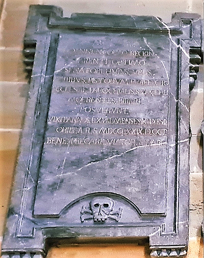 Gedenkplatte des Ratsherrn Johann Nikolaus Recking († 1779) Linke Platte der Dreiergruppe.