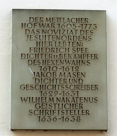 1602: Die Jesuiten kaufen von der Abtei Mettlach den heruntergekommenen Mettlacher Hof am Krahnen und errichten hier ihr Novitiatshaus (1606 vollendet). [1]