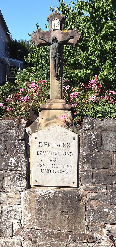 Georg Jakob Meyer berichtet in seinem Standardwerk über die Wegekreuze in der Region von einer Rinderseuche, die es im Jahr 1870 gegeben haben soll. Allein im damaligen Dorf (seit 1912 Trierer Stadtteil) Feyen, sollen der Überlieferung nach etwas 40 Rinder der Seuche zum Opfer gefallen sein. Man habe die Tiere in einer Sandgrube vergraben und zum Gedenken an die Seuche das Wegekreuz an der Pellinger Straße aufgestellt. Das nicht datierte Kreuz sei also in den frühen 1870er Jahren errichtet worden. Der Name "Pestkreuz" ist allerdings etwas irreführend, denn er wird in der Regel nicht im Zusammenhang mit Tierseuchen verwendet, sondern zur Erinnerung an die Opfer der Pestepidemien im 17. Jahrhundert oder zum Dank der Überlebenden. [1]