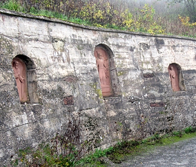 Drei in Weinbergsmauernischen eingefügte Sandsteinreliefs.