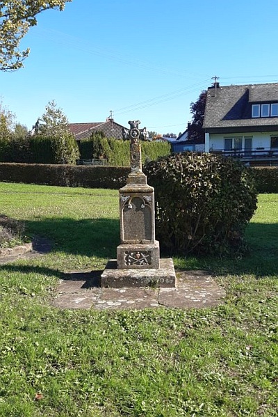 Das Kreuz befindet sich an der Stelle, wo die alte Kirche gestanden hat. Sie wurde laut Pfarrfestschrift von 1985 im Jahre 1864 abgerissen.