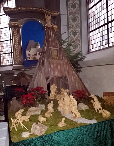 Weihnachtskrippe in der Kirche Sankt Georg und Sankt Wendelinus 2022/2023. [1]