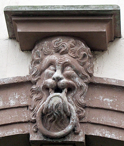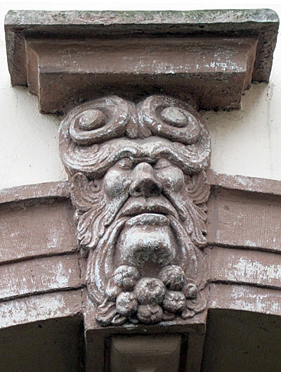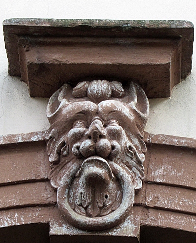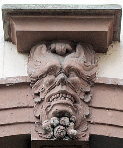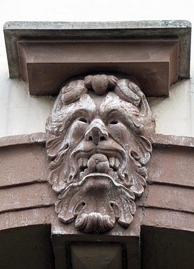 An den Arkaden des ehemaligen Klostergebäudes sind an den Rundbögen reliefierte fratzenartige Skulpturen angebracht. [2]