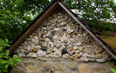 Kleine Kapelle auf Privatgrundstück. Holzreliefbild Kreuzwegstation "Jesus fällt zum 3. Mal unter dem Kreuz" vom Schnitzkünstler K.J. Schenk. Als Grundlage des Holzreliefs diente die einstige Grabplatte des Großvaters, das Bild wurde auf Birnenholz geschnitzt. Die Kapelle selbst wurd mit gesammelten Steinen aus dem Meer erbaut.