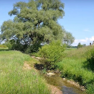 Eine alte Weide markiert die Furt durch den Bach. [1]