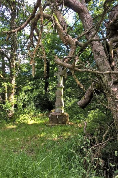 Drei alte Kiefern mit Kreuz