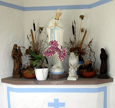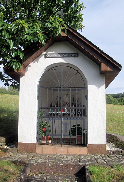 Aus Dankbarkeit dafür, dass seine Ehefrau ihre schwere Erkrankung gesund überstanden hat, errichtete Wilhelm Fries sen. im Jahre 1993 am Fußgängerweg in Richtung Schöndorf diese Kapelle. [2]