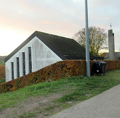 Friedhofskapelle in Ockfen, rückwärtige Ansicht von der Weinbergsstraße. [1]