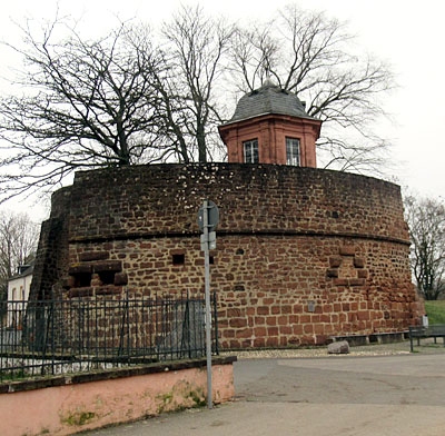 Die mächtige sogenannte Wallmauer (Artilleriewall) wurden zwischen 1531 und 1539 unter Kurfürst Johann von Metzenhausen zum Schutz des kurfürstlichen Teils von Pfalzel samt der Burg, wahrscheinlich nach der Befestigungslehre Albrecht Dürers erbaut. Nachdem in den Jahren 1672 bis 1689 französische Truppen den Ort erorberten und zerstört hatten, begann der Verfall der schwächeren Teile der Wallbefestigung. Sie umfasst noch heute 6 Geschützbastionen, die im Inneren voneinander unabhängig mehrere Geschützstellungen sowie Mannschaftsräume und Pulverkammern aufweisen. Die Gesamtanlage war durch einen Wassergraben umgeben, der heute noch östlich der Wallmaueranlage erhalten geblieben ist. [2]