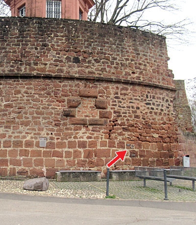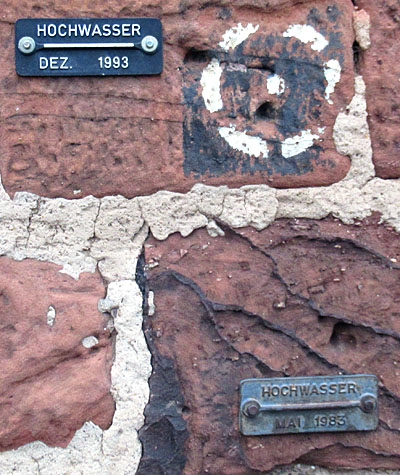 An der Bastion 1 der Befestigungsanlage "Wallmauer" sind zwei Hochwassermarken angebracht (von oben nach unten):