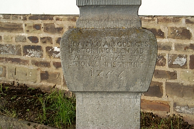 Die sieben Fußfallstationen stammen von 1756. Die Übersetzung der lateinischen Inschrift lautet: Johannes Görges, Pastor in Köln an der Caecilienkirche (heute Schnütgen Museum), hat diese Stationen aufgestellt – 1756. Der Stifter ist am 11.3.1668 in Bleialf geboren. [1]