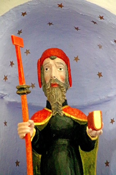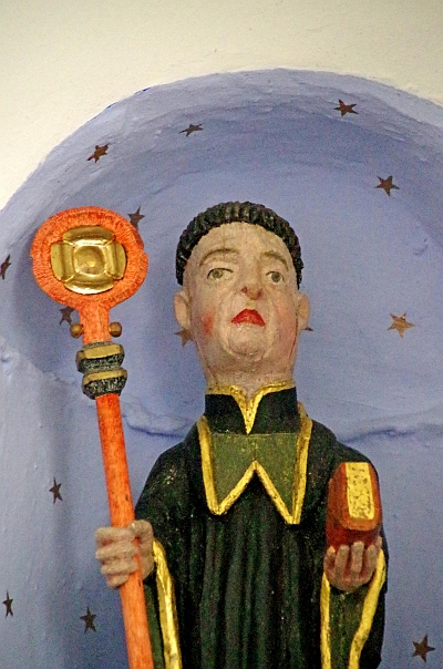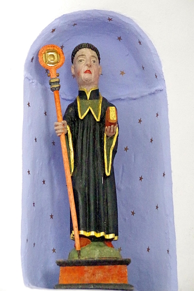 In kleinen Nischen links und rechts vom Altar archaisch anmutende Kleinfiguren (Antonius der Einsiedler und Bernard von Clairvaux, einfach naive ausdrucksstarke Bauernkunst. [1]