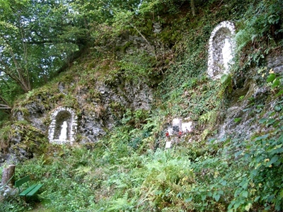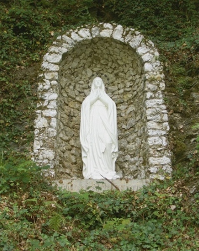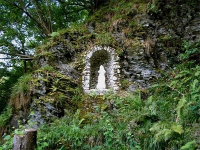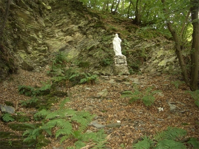 Am selben Aufgang zum Kreuzweg, aber in halber Höhe nach links kommt man zur Lourdesgrotte, schön in den Felsen eingearbeitet, steht sie da, mit Blick über das Moseltal gerichtet.