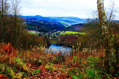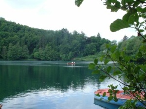 Circa 1,5 km südlich von Daun, mit einer Wasserfläche von ca. 7,2 Hektar, liegt mit etwa 2/3 auf der Gemarkung Schalkenmehren, mit 1/3 und dem Teil des Freibades in der Gemarkung Gemünden (Stadt Daun).