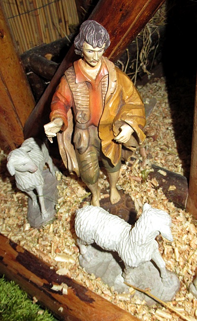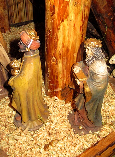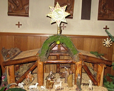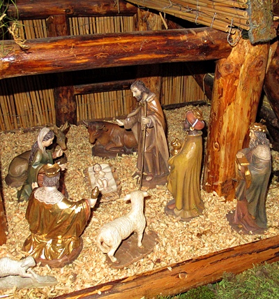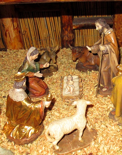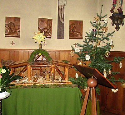 Weihnachtskrippe 2024/25 in Sankt Katharina mit ca. 15cm großen, handgeschnitzten und colorierten Krippenfiguren. [1]