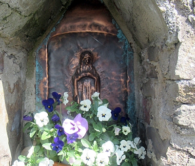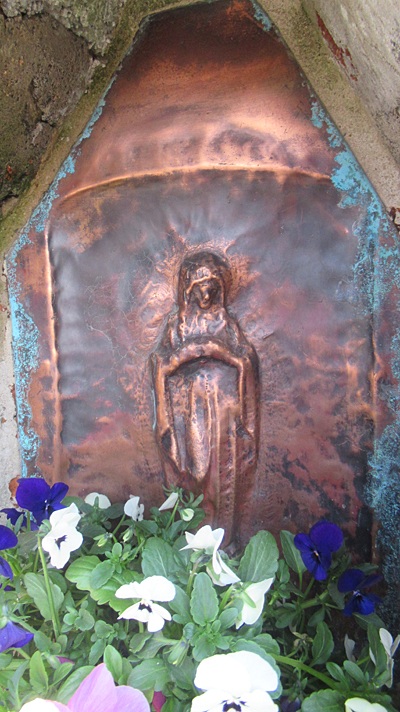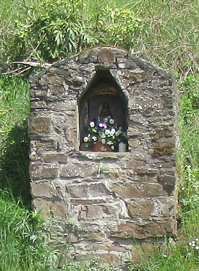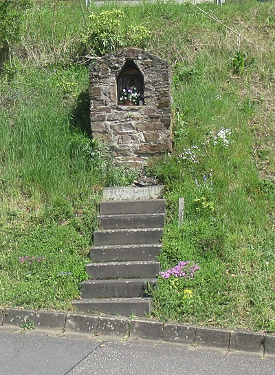 Heiligenhäuschen aus Bruchstein mit Treppenaufgang und Nische, am Straßenrand gelegen. In der Nische eine gusseiserne Platte mit reliefierter Muttergottesfigur. [1]
