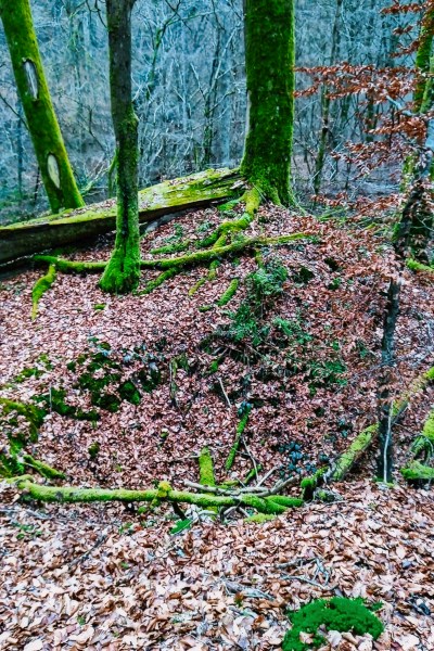 Südlich des Wasserfalls am Sirzenicherbach führt ein alter Pfad zum ehemaligen Jägerhäuschen. Nach ca. 80 m bergaufwärts ist auf der linken Seite des Weges eine bergmännische Vertiefung zu erkennen. Hier wurde früher nach Eisenerz gegraben. Der Aushub ist noch sichtbar. [1]