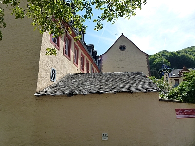Traufständiges Quereinhaus zwischen der Kirchhofstützmauer und der Marienstraße, 1786 durch den Baumeister Leblanc unter Einbeziehung einer älteren Scheune erbaut. Der Wohnteil symmetrisch in fünf Achsen gegliedert, die Haustür in der Mittelachse trägt im Sturz die Jahreszahl 1786 in römischen Ziffern; der gegenüber den bäuerlichen Wohnhäusern höhere Anspruch an Repräsentation zeigt sich auch in der frühen Verwendung der großen Rechteckfenster. Am Wirtschaftsteil korbbogiges, 1764 datiertes Scheunentor, das Wohngeschoß über der Scheunentenne wurde erst zwischen den beiden Weltkriegen eingezogen.
