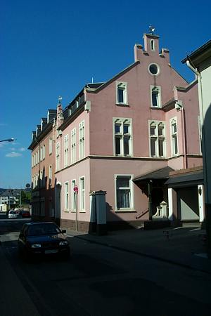 Neugotisches Wohnhaus mit Halbvillencharalcter, für den Weinhändler J. G. Leonardy nach Entwürfen des Maurermeisters Heinrich Kokke von 1866 errichtet. Das zweigeschossige, traufständige Torfahrthaus ein Putzbau