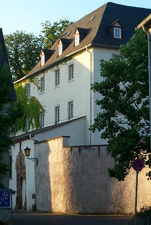 Ehemalige Kirche Sankt Johannes der Täufer, erstmals zusammen mit dem Mettlacher Hof in einer undatierten Urkunde Erzbischofs Arnold I. (1169-83) und in einer Erklärung des Domkapitels von 1173 erwähnt. Mit dem Erwerb des Mettlacher Hofs ging auch die Kirche zu dem alten Sankt Johan 1601 an den Jesuitenorden über, der sie im Zusammenhang mit der Errichtung seines Noviziats durchgreifend erneuerte und überbaute, 1606 Konsekration. Nach der Säkularisation bis 1837 als Salzlager genutzt, befand sich das kleine Kirchengebäude bei der Übernahme durch die Borromäerinnen 1849 in baufälligem Zustand (zuletzt 1959 umgreifend restauriert und zum Pilgersaal eingerichtet, heute Tagungsraum).
