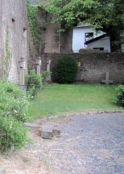 Rund um den ehemaligen Chortum der alten Kirche Irrel befinden sich 14 Kreuzwegstationen, teilweise sind die Stationen beschädigt.