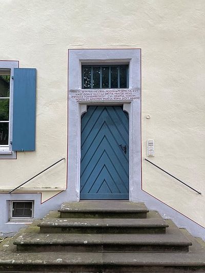 Ehemalige Stiftskurie - Inschrift Hauseingang
