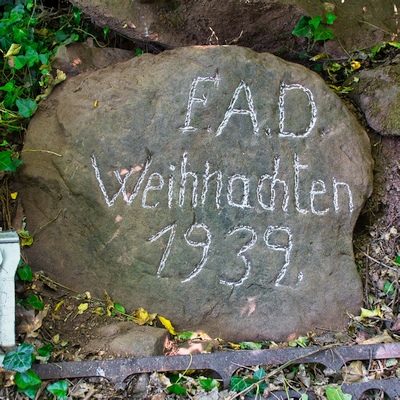 Der Gedenkstein erinnert an eine Wegebaumaßnahme des FAD [Freiwilliger Arbeitsdienst] im Winter 1939. Der Weg führt durch den Frohnholzberg über den Brandenberg nach Hofweiler. [2]