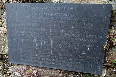 Dieser Kreuzweg wurde im Rahmen des Flurbereinigungsverfahren hergerichtet und am 14. September 1997, dem Tag der Kreuzerhöhung, eingeweiht.