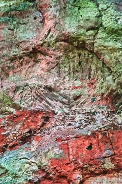 Rechts vom Eingang zur großen Sandhöhle im Gillenbachtal ist in der Felswand ein Raubtierkopf eingeritzt. In den 1950er Jahren war er noch gut sichtbar und vollständig erhalten. Mittlerweile ist er durch Erosion stark verwittert. [1]