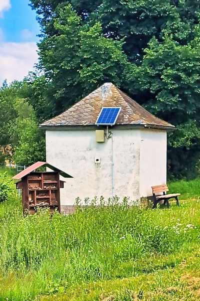 Pumpstation. Gebaut im Jahre 1939. Betrieben zuerst von der Gemeinde, später vom Kreiswasserwerk. Stillgelegt ca. 1980. Seit 2012 wieder Gemeindeeigentum. [1]