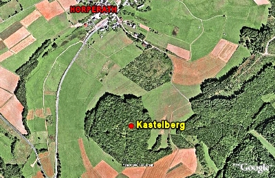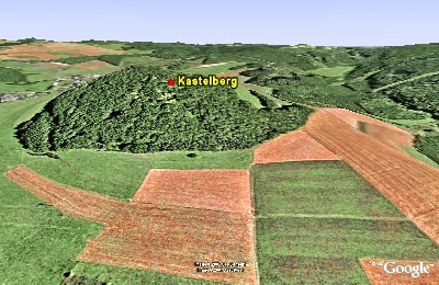 Forschungsgeschichte: Von dieser schon bei Steininger erwähnten Anlage fertigt Lehrer Laux 1853 den ersten Burgwallplan. Am 1. Juli gab er dann in einem wortreichen Bericht Erläuterungen dazu. Auch Pfarrer Ost verfaßt eine genaue Beschreibung über den Kastelberg und die drei Steinringe, welche, wie er meint, unverkennbar von Menschenhänden gebildet sind. Intensiv beschäftigt sich auch Steiner mit dieser Befestigung, indem er sich mit dem Plan und den Beschreibungen von Lehrer Laux auseinandersetzt.