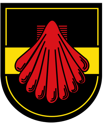In Schwarz ein goldener Balken, belegt mit einer roten Muschel