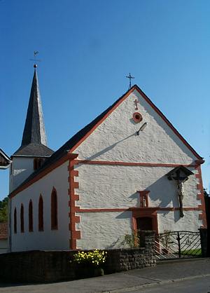 Die Kapelle ist ein einfacher, schlicht geputzter Bau in Bruchstein mit Ostturm v. J. 1717. Das Schiff, Ende d. 18. Jahrhundert oder nach der zerstörten Zahl über dem Westportal i. J. 1811 (?) erbaut, ist im Lichten 7,05 Meter breit und m,56 Meter lang. Der kleine dreigeschossige Turm mit schlanker Schieferpyramide reicht mit dem Gesims des zweiten Geschosses bis zum Steingesims der Kirche. Von den Schalluken zeigt die östliche vom älteren Bau noch ein Säulchen, dessen Kapitell Durchsteckformen aus dem Kubus wie bei spätgotischen Basen zeigt. Die anderen drei mit einfachen Kämpferkapitellen. Das Schiff mit drei rundgeschlossenen Fenstern auf jeder Seite; die Kanten mit regelmäßig zurückspringenden Quadern besetzt. Das Westportal mit profiliertem Gewände und kleiner Nische auf dem geraden Gesims. Die beiden Füllungsflächen der Tür mit spätem Rokokoornament bedeckt. Die Turmhalle, ehemals Chor, dient als Sakristei und ist rippenlos kreuzgewölbt. Der rundbogige Triumphbogen mit Profilkämpfer ist erhalten. Das Schiff mit einfacher Voutendecke auf Steingesims.