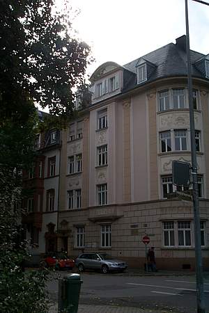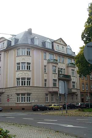 Imposantes, repräsentatives Mietshaus des Neuklassizismus, nach Entwurf des Architekten und Baugeschäft-Inhabers Cäsar Kokke von 1914 als Renditeobjekt für die Witwe des Buchhalters Ludwig Frings erbaut, 1983-85 restauriert. Eckhaus zur Franz-Ludwig-Straße.