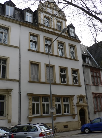 Dreigeschossiges Doppelmietshaus des Schreinermeisters Quirin Hofscheuer, nach Entwurf des Architekten Peter Marx von 1904 errichtet.