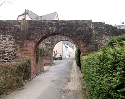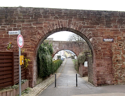 Bilder 1 und 2 zeigen den Bereich Golostraße / Münzstraße mit den Torbogen der Befestigungsanlage "Wallmauer". [2]