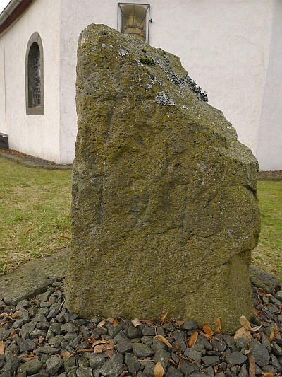 Standort: an der Kapelle, am Stein ist die obere rechte Ecke abgebrochen, nur noch 18 .. vorhanden.