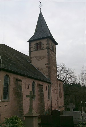> Ursprünglich dreischiffige Basilika des 12. Jahrhundert, um 1200 erweitert, bei der Einwölbung im 15. Jahrhundert zu einer Stufenhalle umgewandelt, 1958/59 Neuausmalung unter Berücksichtigung der freigelegten Reste der ursprünglichen Farbfassung