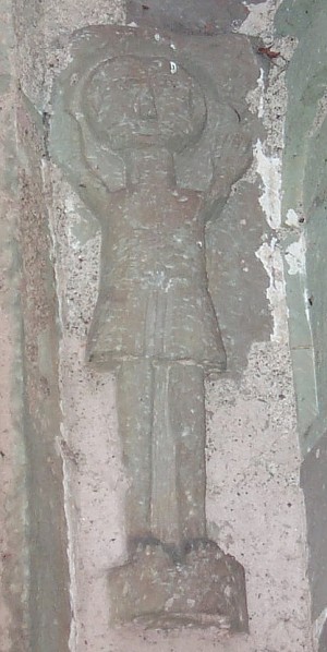 Im Zwickel zwischen Nord- und Hauptapsis das sogenannte Rother Männchen. Ein Sandsteinrelief wohl aus dem 11. Jahrhundert.