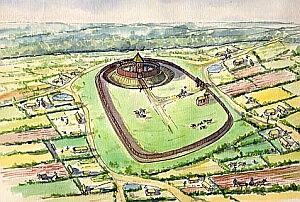 Hier hat sich ein mittelalterlicher Burghügel erhalten. Die Kuppe des Hügels wurde abgetragen um den umlaufenden Graben aufzufüllen.