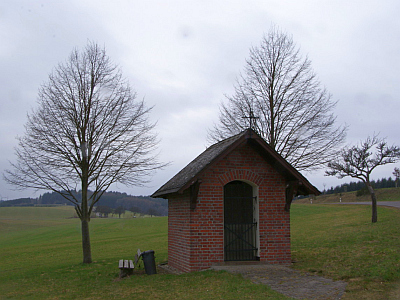 Südlich der Ortslage in der Feldflur, nahe der K 95: Lourdeskapelle; Ziegelbau, bezeichnet 1905. [1]