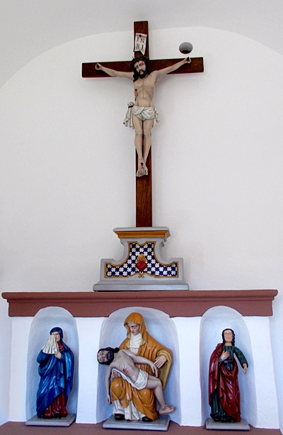 Die am südlichen Ortsrand gelegene Kapelle, ein schlanker, fensterloser Putzbau, wird noch dem späten 18. Jahrhundert angehören. Ein in den Giebel vermauertes Kreuz bezeichnet sie als 1879 renoviert. Der Rechteckbau wird von einer Tonne überwölbt; er enthält einen gemauerten Altarblock und ein barockes Holzkruzifix. [1]