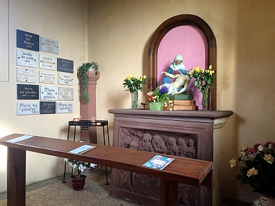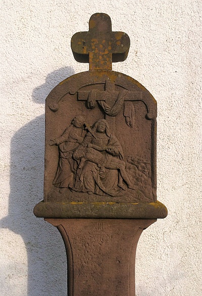 Zu der westlich über dem Ort gelegenen Kapelle führt von Seffern her ein Kreuzweg, dessen Stationsbilder segmentbogig schließende Reliefs auf hohem Schaft - wie die Kapelle aus dem 18. Jahrhundert stammen. Der annähernd quadratische Raum mit Walmdach ist heute flach gedeckt. Auf eine ursprüngliche Wölbung verweisen die noch vorhandenen Eckdienste. Das Antependium des gemauerten Altarblocks zeigt die Grablege Christi und dient somit quasi als 14. Kreuzwegstation. Der Altar trägt heute die Plastik einer Pietà. In die rechte Längswand ist eine Muschelnische mir einem männlichen und einem weiblichen Heiligen eingelassen, die Zeichnung ihrer Gewänder wirkt noch spätgotisch. [1]