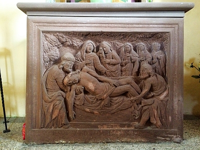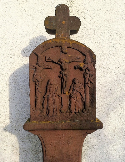 Barocke Kreuzwegstationen, zweite Hälfte des 18. Jahrhunderts, 14. Station in der kleinen kubischen Kapelle. [2]